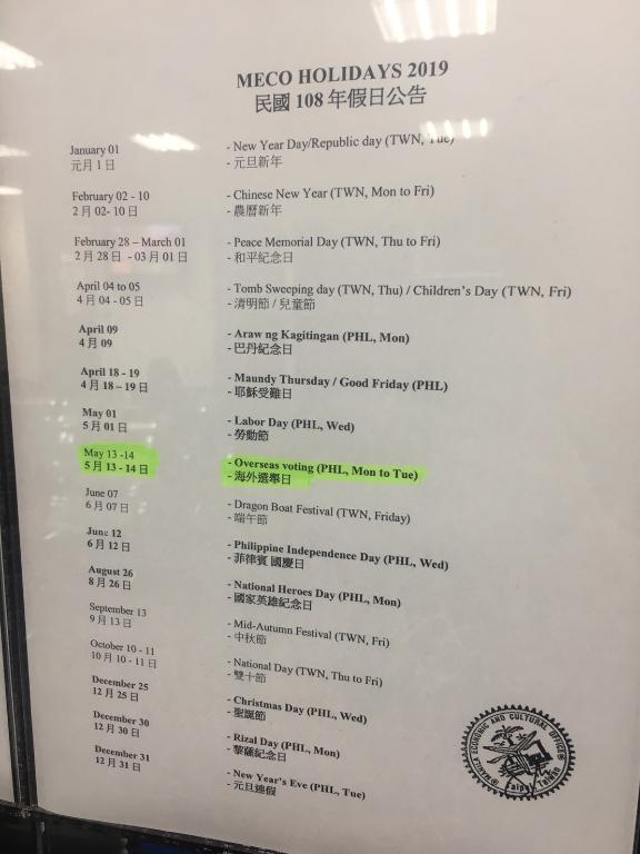 跟大家說一下~簽證處門口都會有領件收件的時間公告和簽證處的休假日,因為菲律賓有很多國定假日會休假,所以送件時可以順便確認一下喔!