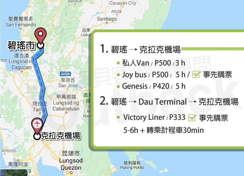 接機的部分澳貝客都處理好了,完全沒有問題,那~那~那~課程結束後我要怎麼從碧瑤回到克拉克機場呢???莫急莫荒莫害怕,小編整理了幾種交通方式,帶大家一起從碧瑤回到克拉克機場喔! 是不是很Hen 貼心~~